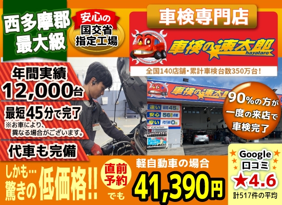 【車検年1万台】日の出 あきる野の4.1万の格安車検!